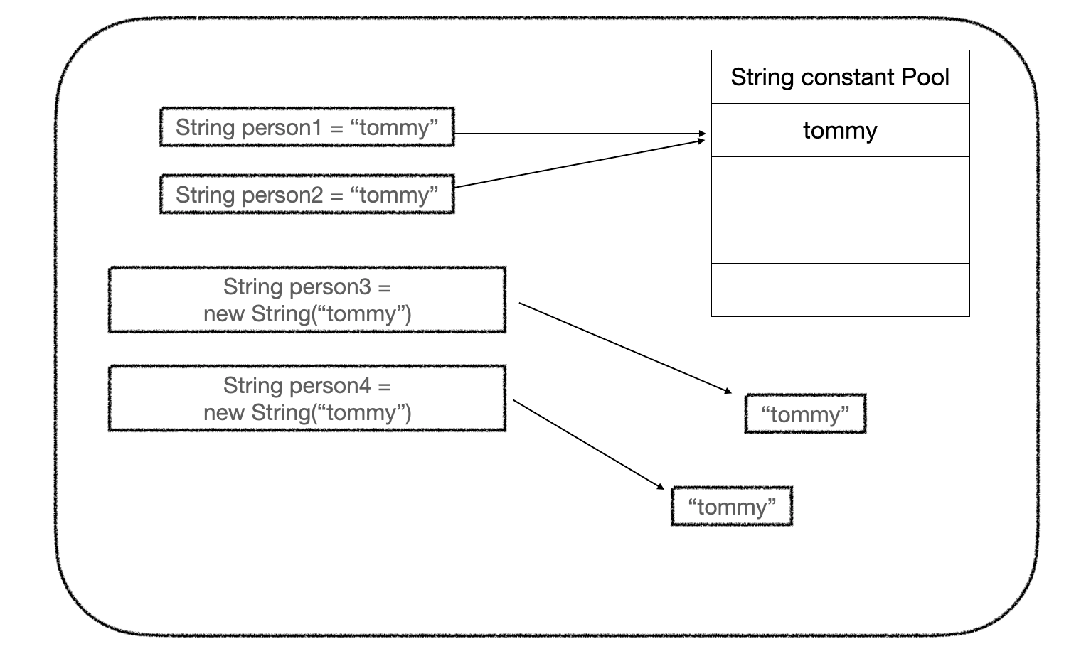 string constant pool이라는 영역에 존재하게 됩니다.- string constant pool 에 주어진 문자열이 있는지 검색합니다.