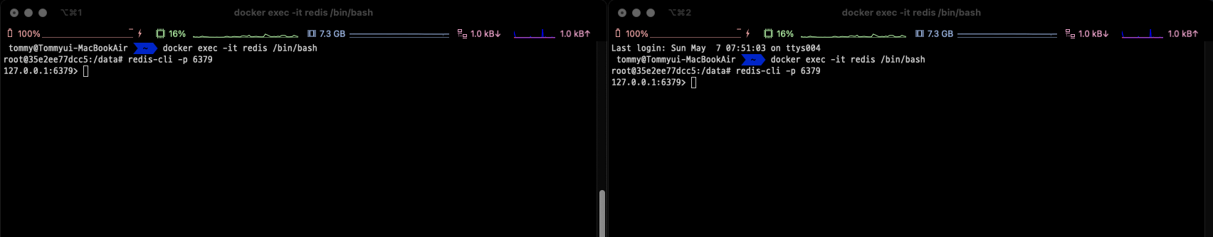 3. 레디스 서버 terminal로 실행 (두 가지를 띄워주면 됩니다.)